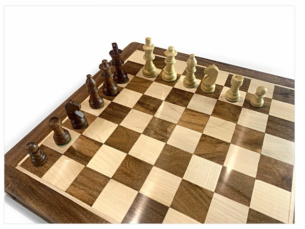 Ce superbe jeu d’échecs est destiné aux enfants comme aux adultes. D’une dimension de 12 pouces, il est composé de bois d’acacia et d’érable. Pour vous accompagner dans vos voyages, cet échiquier dispose d’un tiroir coulissant pour ranger toutes les pièces qui accompagnent ce modèle. Ainsi, il vous sera plus simple de ne pas égarer une pièce.