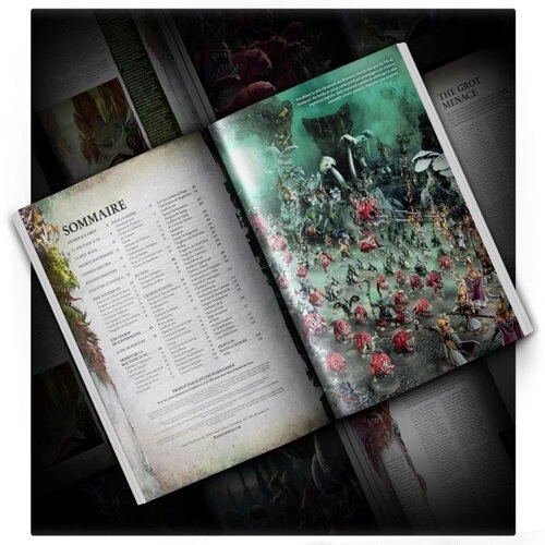 – Des illustrations malsaines représentant les grots ainsi que leurs alliés arachnoïdes, leurs squigs de compagnie et les brutaux troggoths