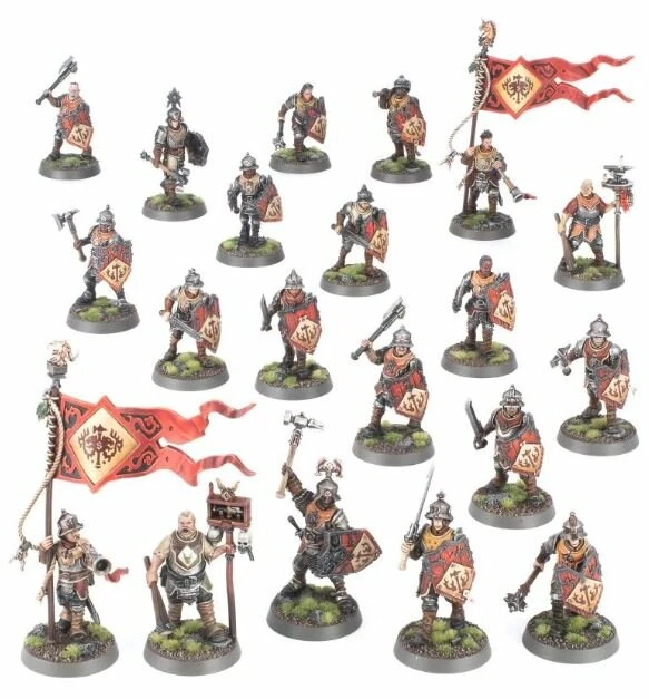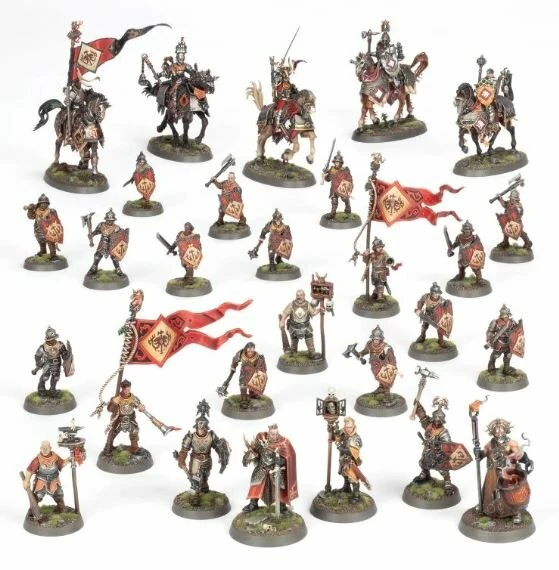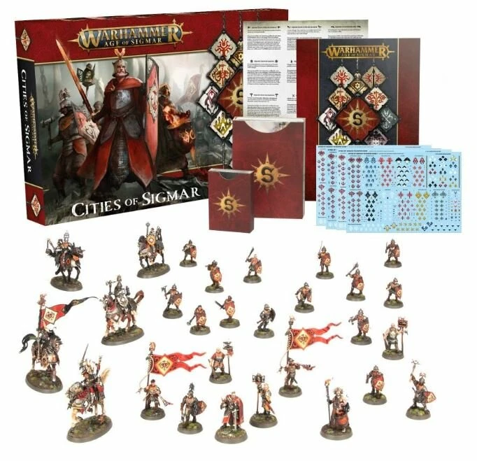Les Cités de Sigmar sont des bastions de lumière et d’espoir dans les royaumes assiégés par les ténèbres. Avec la foi et une puissance de feu dévastatrice, leurs armées mortelles luttent contre les démons, les monstres et les esprits. Suivant les ordres de leurs officiers vétérans, des rangs d’infanterie éreintés dressent leurs boucliers pour repousser les assauts ennemis tandis que des formations de cavalerie en armure lourde balaient l’ennemi pour arracher de glorieuses victoires au nom du Dieu-Roi.
