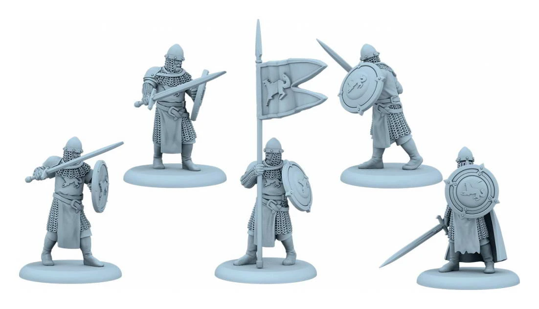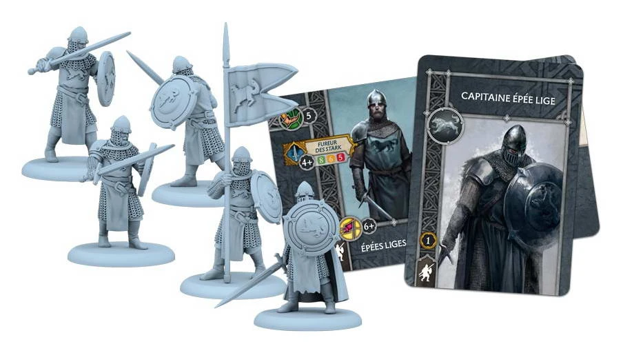 Courageux, compétents et d’une loyauté sans faille envers la bannière du Loup-Garou, les Épées Liges préfèrent périr jusqu’au dernier plutôt que d’abandonner leurs frères au combat. Leurs armes et leurs armures ne rivalisent peut-être pas avec celles des Maisons plus fortunées, mais ces hommes savent qu’un guerrier ne se juge pas qu’à la qualité de son équipement.
