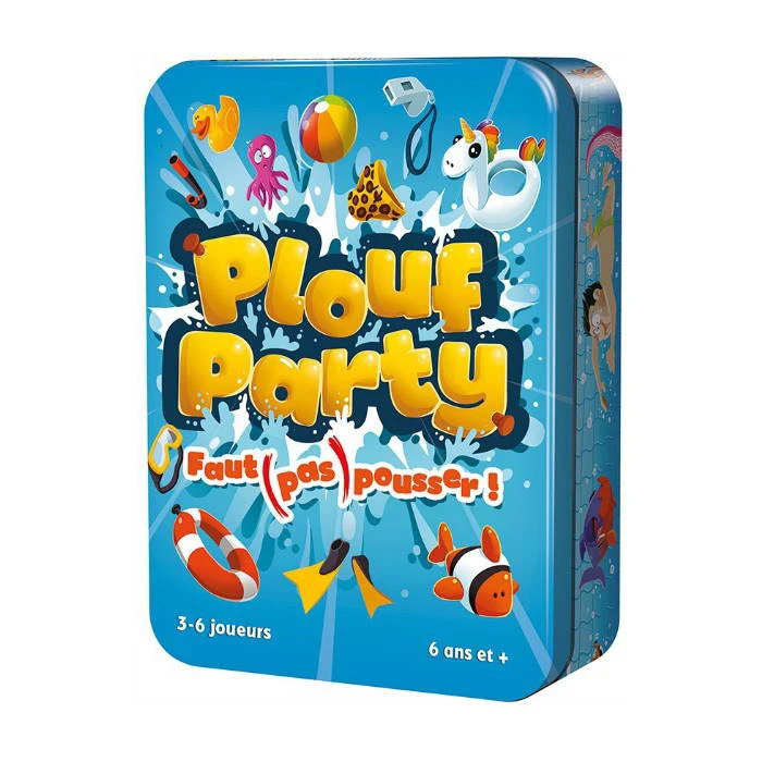 Dans le jeu Plouf Party, vous poussez les autres pions à l’eau pour être le dernier au sec sur le bord de la piscine. Rusez pour ne pas dévoiler trop tôt votre couleur secrète et pour piéger les adversaires ! Pas de pitié pour les poules mouillées ! Nan mais à l’eau, quoi !