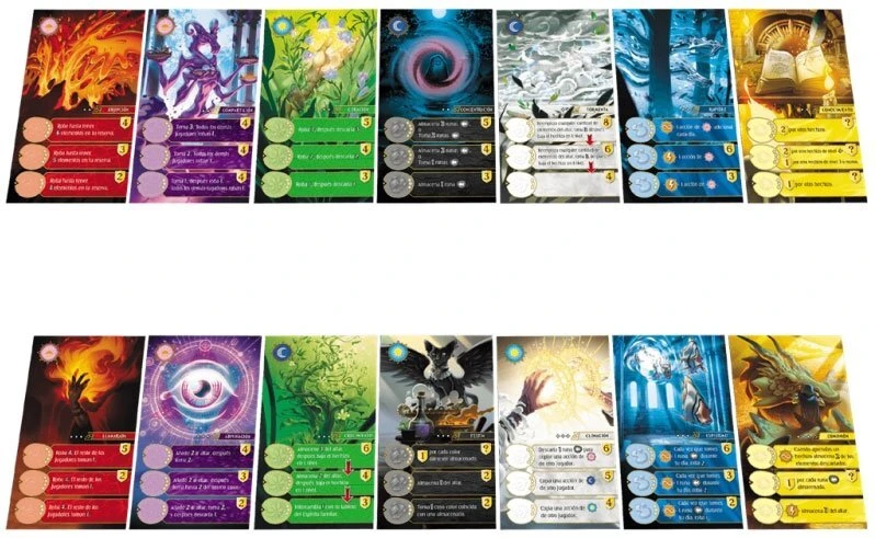 Au cours d’une partie, alternez les tours entre les joueurs. À votre tour, alimentez l’Autel en materia et choisissez si vous prenez un Materia de l’autel ou si vous préférez piocher deux materia du Vortex. Utilisez ces materia pour rechercher des sorts qui vous aideront à chaque manche ultérieure ou alimenter votre familier. Chaque sort peut être recherché de trois manières différentes. Préfèrerez-vous obtenir des effets plus tôt dans le jeu ou attendre pour en obtenir de plus puissants ? Chaque sort s’active le matin lors de la pioche de materia, l’après midi quand vous les dépensez, le soir avant de lancer un nouveau tour, ou au moment où vous débloquez le sort ! Quand un joueur a recherché ses sept sorts ou donné le maximum de pouvoir à son familier, finissez le tour en cours et comptez les points des sorts recherchés et du familier. Le plus haut score remporte la partie !