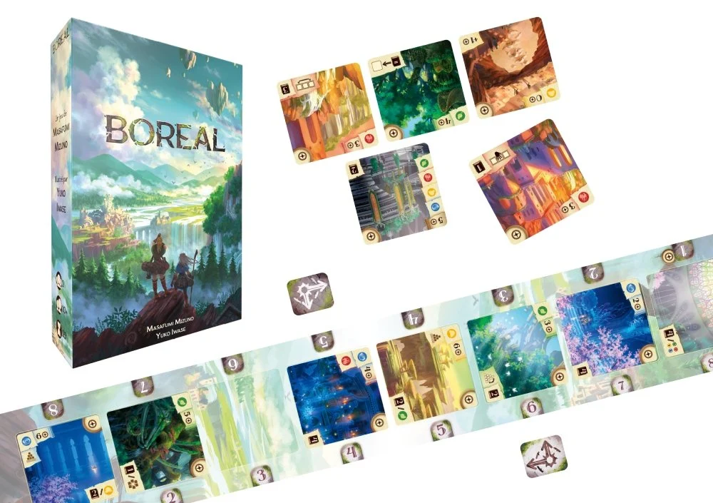 Boréal est un jeu de gestion et composition de tableau pour 2 joueurs et joueuses, dans lequel vous devez explorer un monde étrange pour y grappiller des connaissances sur le monde passé. Il se joue exclusivement à 2, dès 10 ans, pour des parties de 25 minutes environ.