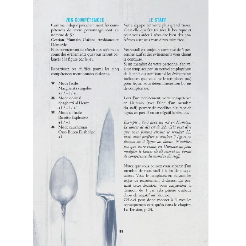 Dans Chicago Kitchen, créez votre chef de restaurant et son équipe pour en vivre l’aventure d’ouvrir un restaurant ! Au fil des pages du livre, vous découvrirez une foule de détails immersifs sur le quotidien coloré de Chicago, et vivrez une aventure palpitante avec l’aide de votre équipe, jusqu’aux tréfonds de cette ville où les néons clignotent aussi rapidement que les coups de la chance. Il ne vous manque qu’un crayon pour vous lancer ! Avec des thèmes matures, il est recommandé à partir de 16 ans.