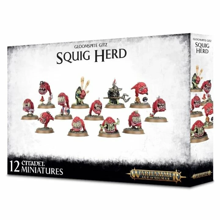 Ces petits monstres sont bienvenus dans votre armée grâce à leur incroyable capacité offensive – il suffit de les orienter vaguement dans la direction de ce que vous voulez leur faire mordre, et de donner l’assaut. Vous pouvez même à votre guise en aligner toute une armée en jeu égal, les Squig Herds étant une option de Ligne pour les armées dotées d’un général Moonclan. Imaginez la tête de vos adversaires…