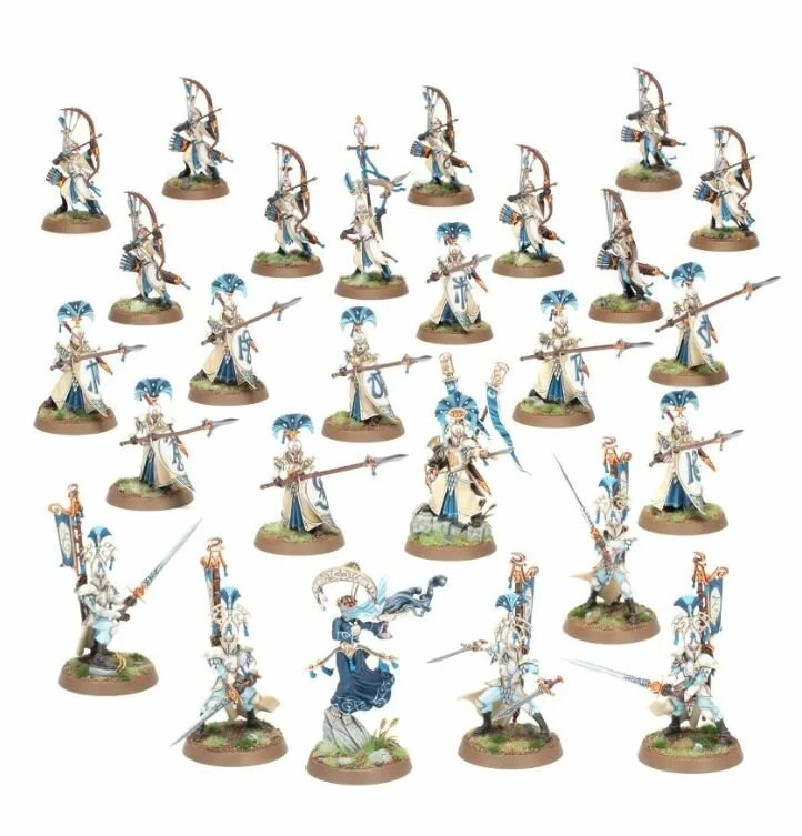 Si vous êtes prêts à apporter l’harmonie aux Royaumes Mortels, cette boîte d’Avant-garde est un point de départ idéal pour une collection de Suzerains Lumineths, ou un ajout considérable à une armée existante, et vous permettra de faire des économies en comparaison avec un achat à l’unité. La boîte contient un Héros mystique et une foule d’unités de Ligne, offrant un choix d’options offensives, défensives et à distance pour assembler grâce à cette seule boîte une armée entière prête pour une partie de Warhammer Age of Sigmar.