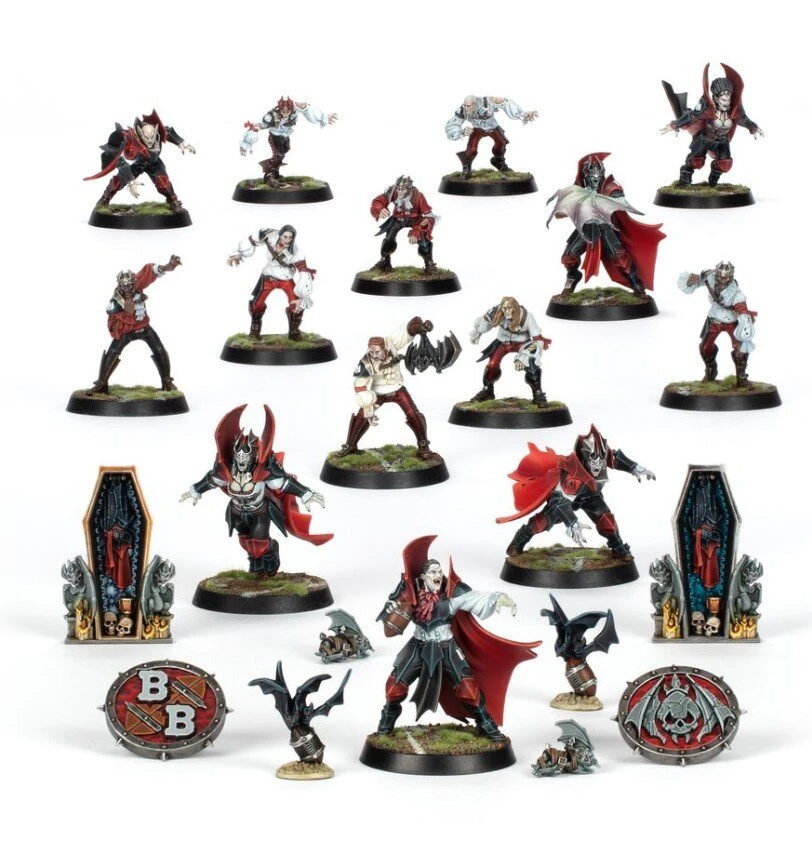 Le kit est composé de 96 éléments en plastique et est fourni avec 14x socles ronds Citadel de 32mm et 1x Planche de Décalcos d’Équipe de Vampires. Ces figurines sont fournies non peintes et nécessitent assemblage – nous recommandons d’employer la Colle Plastique Citadel et la peinture Citadel.