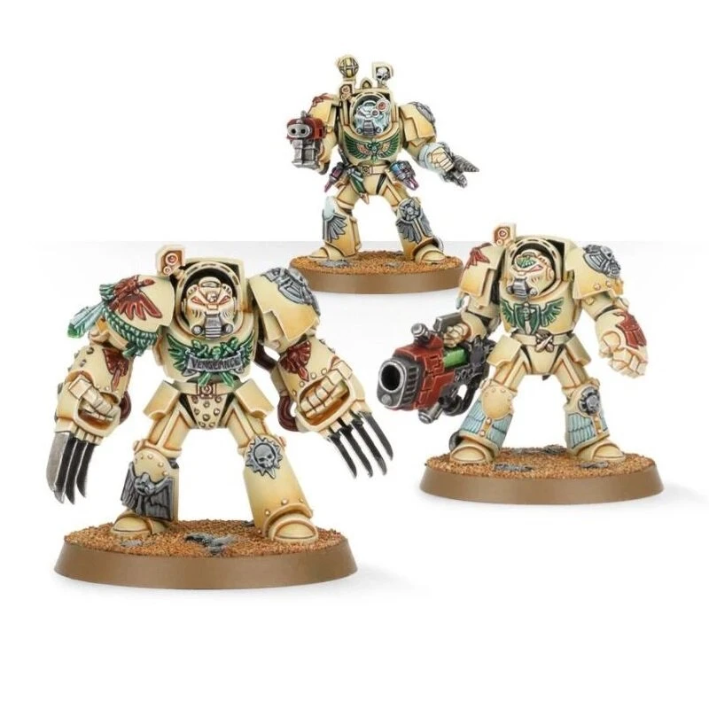 Les membres de haut rang du cercle intérieur sont parfois entourés d’une Escouade de Commandement de la 1re Compagnie. Une telle unité de vétérans de la Deathwing triés sur le volet est idéale pour former une escorte ou accomplir des missions de confiance.
