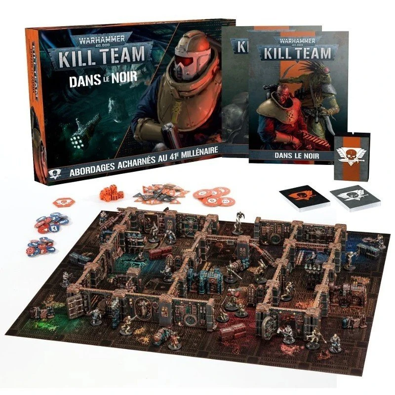 - 1x livre à couverture souple de 120 pages Kill Team : Dans le Noir : il contient les règles de vos kill teams ainsi que de l’historique, des illustrations, des missions et des campagnes liées à bort du space hulk, le Gallowdark