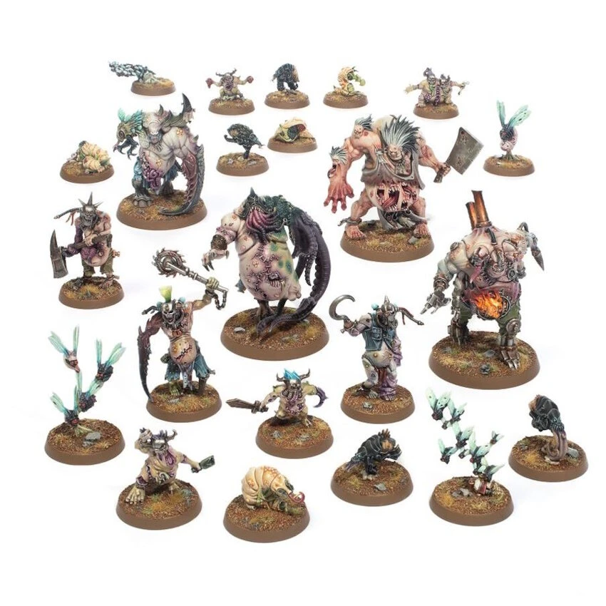 Ce kit plastique vous permet d’assembler 23 Varioleux Geller, une horde déformée par le warp de démons repoussants et de mortels mutés. Ces figurines peuvent être utilisées comme des agents Varioleux Geller dans vos parties de Kill Team. Chaque figurine de ce set écœurant est unique : le bouffi Vulgrar le Trois-fois Maudit et ses trois Mastodontes Cauchemardesques, quatre malicieux Bogueux et trois Varioleux Mutants titubants, ainsi que 12 Vermines Mutantes (Affremites, Dardezieux et Vers de Bourbe) qui accompagnent les Varioleux Geller au combat.
