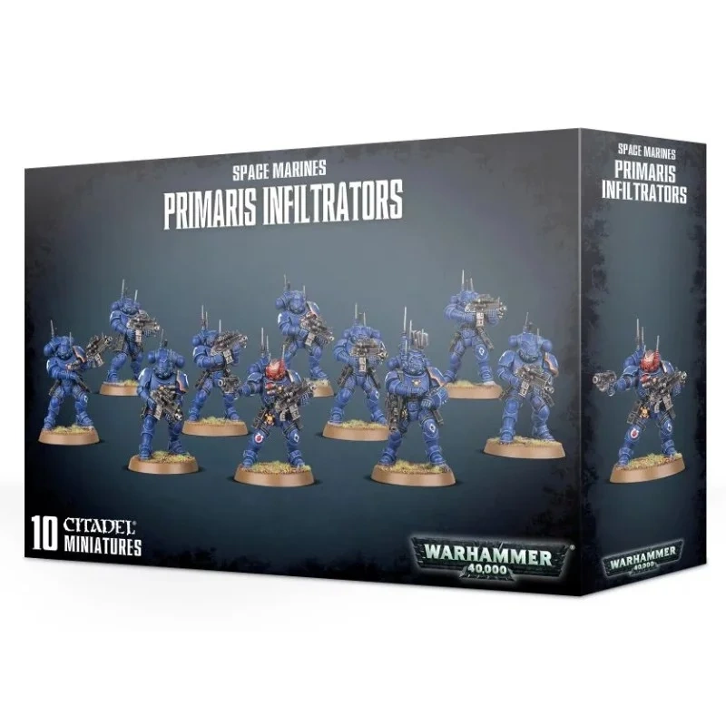 Vifs et légers dans leur armure Mk X Phobos, les Primaris Infiltrators ont pour tâche de perturber les transmissions adverses et de saboter les cibles qui se présentent. Le premier signe qu’en voit l’ennemi est la cascade de fumée asphyxiante quand les Infiltrators lancent un barrage de grenades pour masquer leur progression. Alors que les défenseurs tentent de percer le brouillard, les Space Marines abattent leurs cibles par des salves disciplinées, éclairant leurs victimes grâce aux auguroscopes de leurs carabines bolters d’élite.