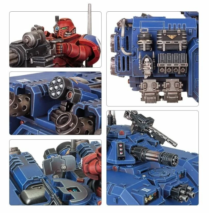 – une mitrailleuse Ironhail Icarus sur affût arrière, pouvant être remplacée par une nacelle lance-roquettes Icarus, un bolter Storm ou un lance-grenades Fragstorm;