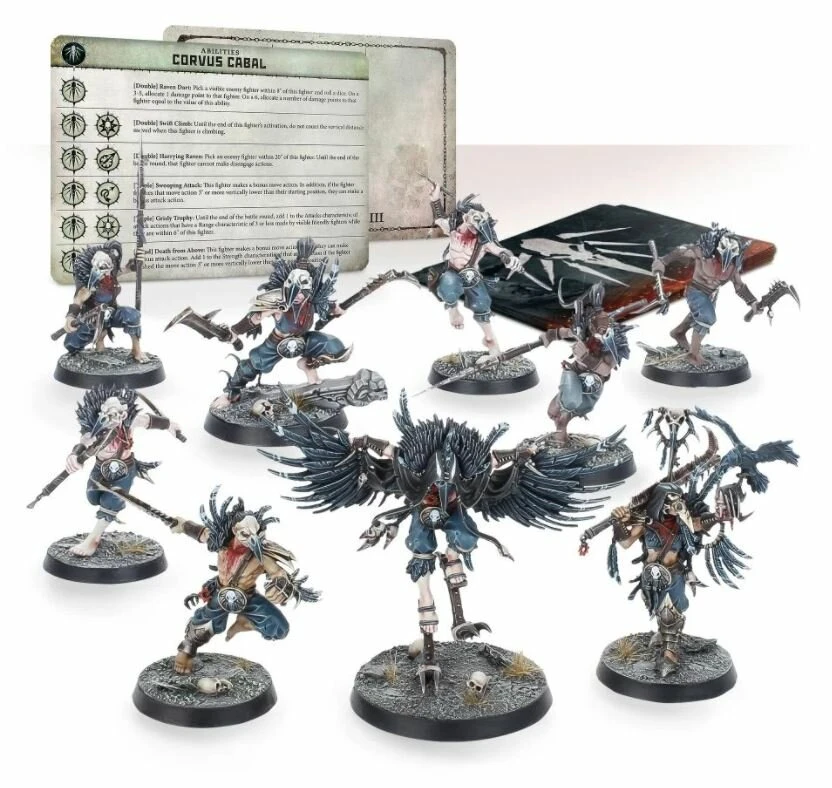 Dominez Warcry par la furtivité, la ruse et la sauvagerie animale avec la Corvus Cabal! Ce set de bande vous permet d’aligner ces cultistes ténébreux dans vos batailles, et il contient: