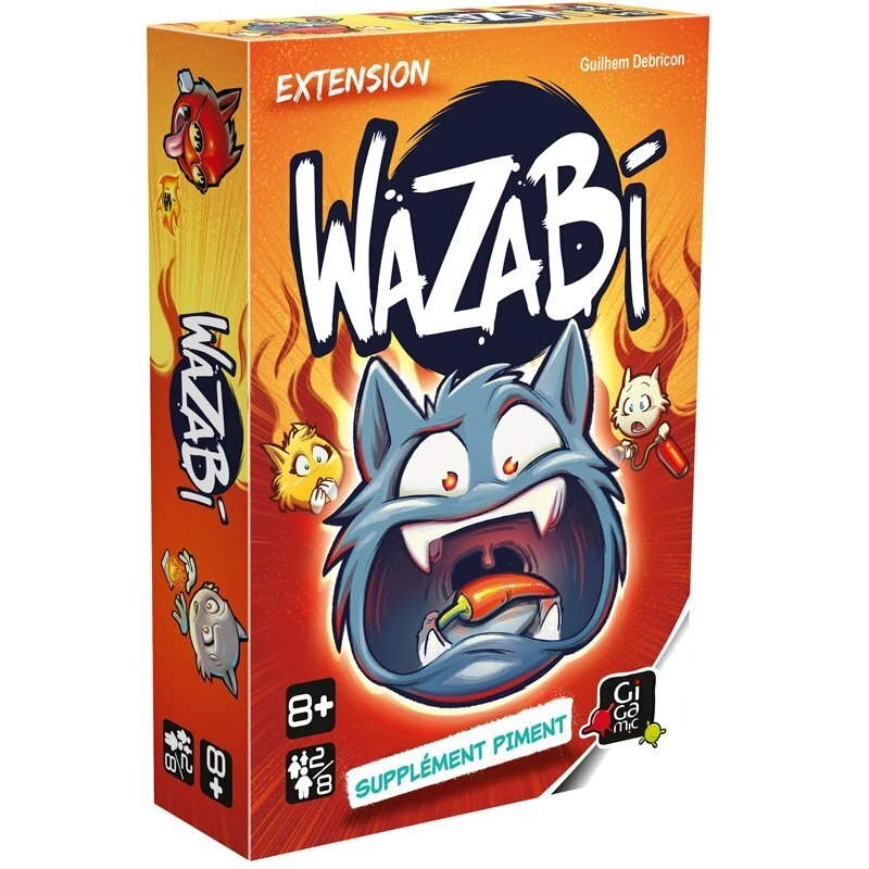 Avec Supplément Piment, passez au niveau épicé de Wazabi ! Avec ses nouveaux dés et ses cartes inédites, vous allez pouvoir déchainer des effets complètement fous dans votre sillage. Lancez les dés et prenez garde au piment !