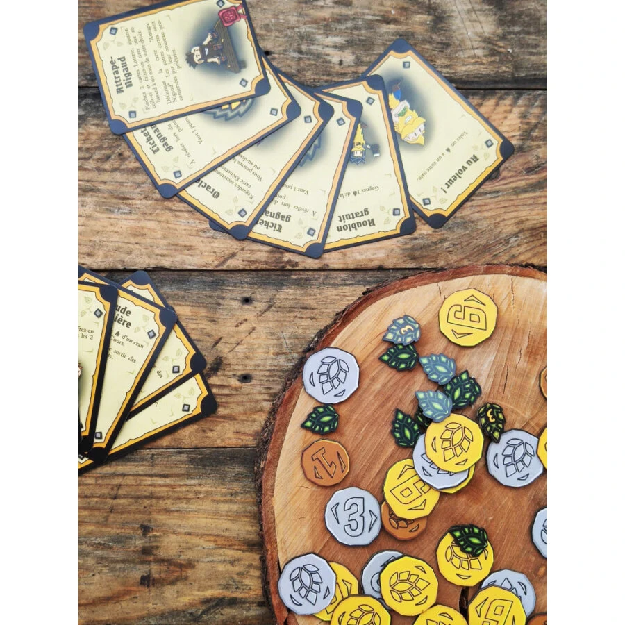Houblon est un jeu de société pour 3 à 6 joueurs. Achetez et vendez du Houblon pour vous imposer comme Maître de la taverne !