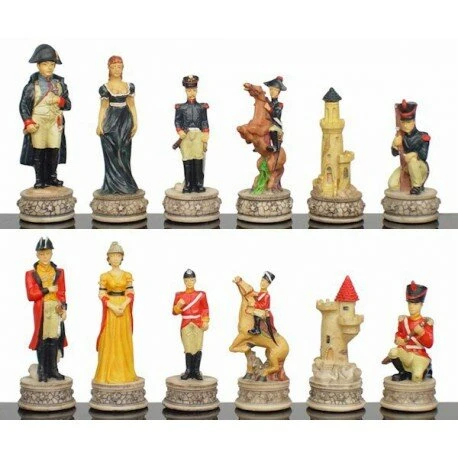 Coffret de jeu d’échecs incluant figurines Napoléon-Wellington n°3 et échiquier de 40cm.
