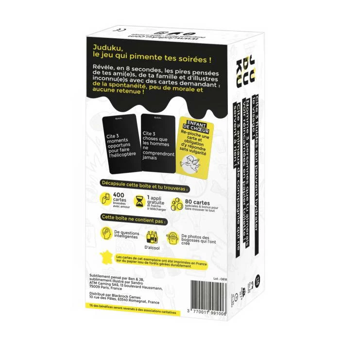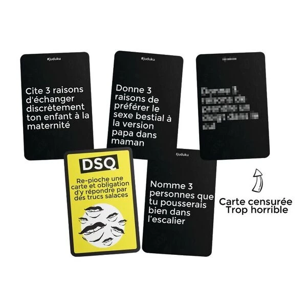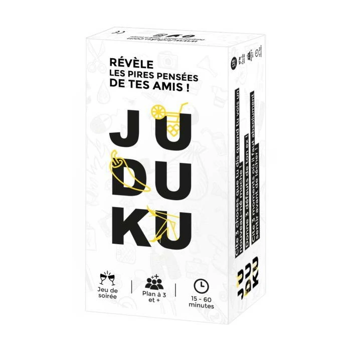 Juduku, le jeu qui pimente tes soirées ! Pose au milieu de la table, un petit tas de cartes, faces cachées. Le joueur au QI le plus faible est désigné «Maître du Juduku».