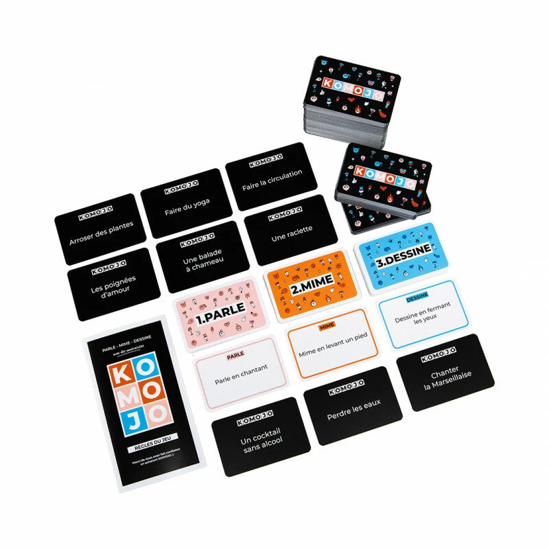 Faites deviner un maximum de cartes Komojo en 45 secondes à ton équipe en décrivant les mots ou phrases de tes cartes.