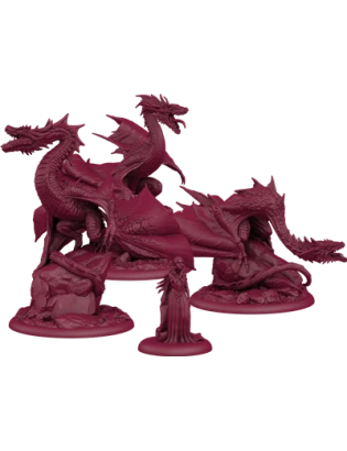 Après avoir été brûlée sur le bûcher qui a incinéré son mari, Khal Drogo, et la sorcière Mirri Maz Duur, Daenerys surgit avec trois petits dragons. Bientôt, ces petites créatures grandissent en taille et en férocité, mais toujours près de leur mère. Cette incroyable boîte apporte au jeu deux versions de Daenerys en tant que commandante et les trois dragons en tant qu’unités dévastatrices !