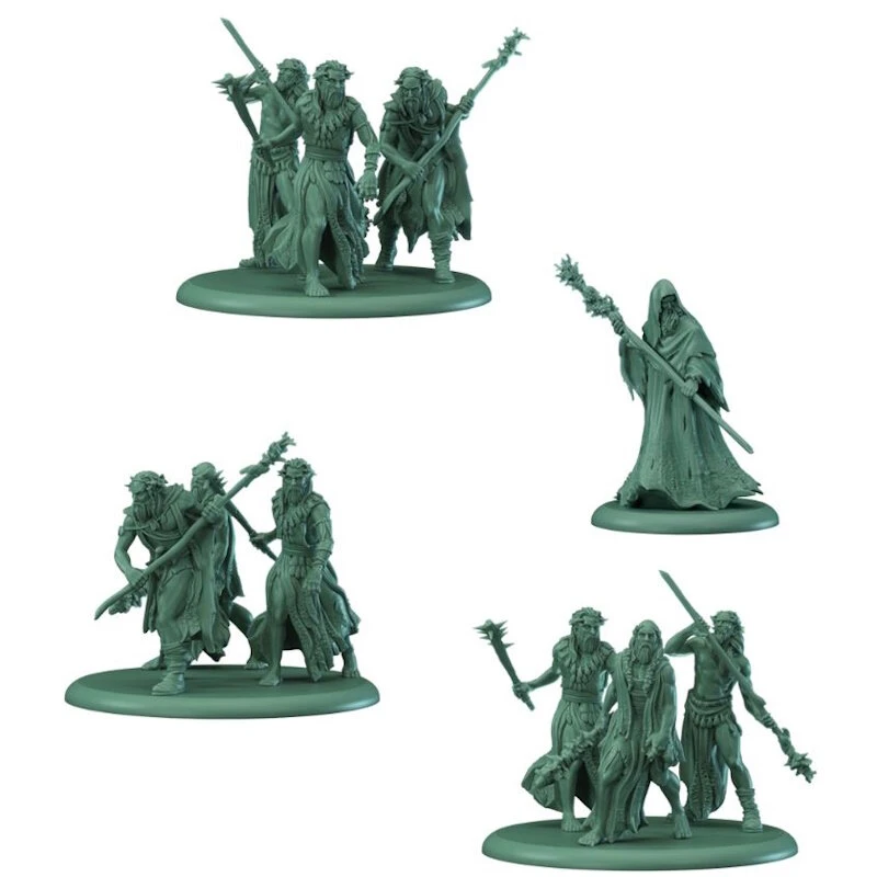 5 Figurines (2 Prophètes Noyés, 3 de Noyés par groupe de 3), 5 Cartes (2 Cartes Attachement, 3 Cartes Unité), 3 Plateaux de Déplacement