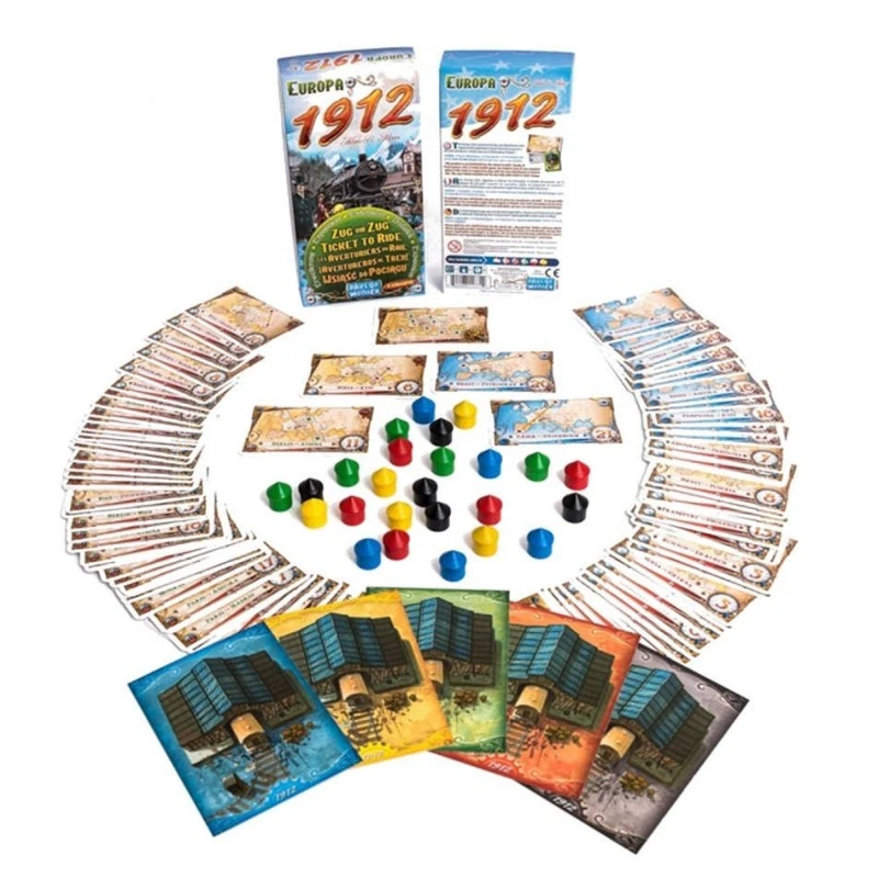 L’extension Les Aventuriers du Rail : Europe 1912 contient 101 cartes Destination : les 46 cartes d’origine, plus 55 nouvelles qui permettent de jouer avec 3 variantes sur le plateau Europe :