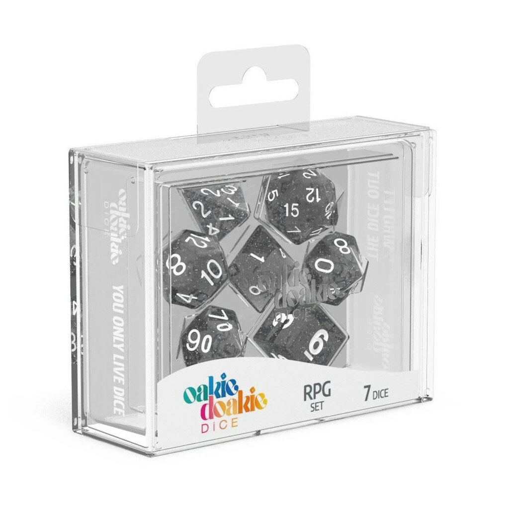 Sublimez vos sessions de jeu avec l’esthétique mystérieuse du set Oakie Doakie Dice RPG Speckled Noir. Que vous y voyiez une nébuleuse lointaine ou une pincée de poussière féerique, ces dés apportent une dimension visuelle unique et captivante à chaque lancer critique.