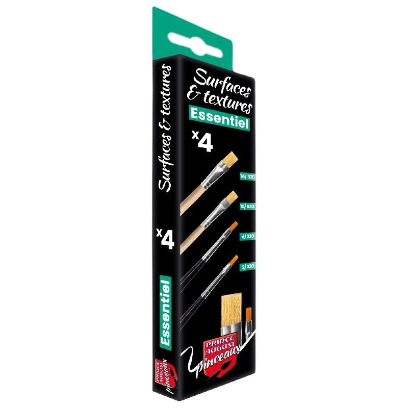 - Brosses en Soie (Série 520) : Tailles 14 et 10 pour le travail de texture et brossage.
