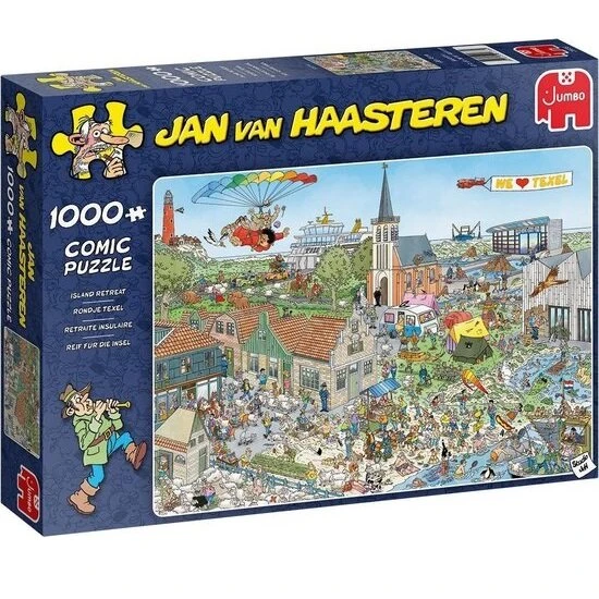 Cette boite contient un magnifique puzzle humoristique et détaillé de 1000 pièces, illustré par Jan van Haasteren.