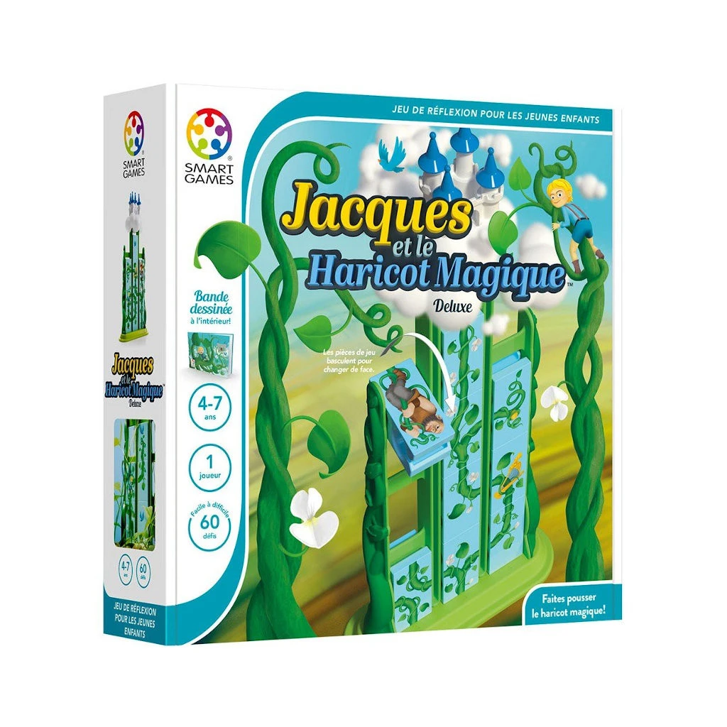 Découvrez la magie du conte populaire «Jacques et le haricot magique» avec ce jeu de réflexion et de logique en 3D destiné aux jeunes enfants. Aidez Jacques à grimper le long du haricot magique pour atteindre le château du géant dans les nuages. Il vous faudra placer les pièces de jeu dans le bon ordre et du bon côté en les faisant basculer de haut en bas par un effet mécanique…magique !