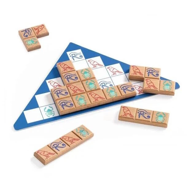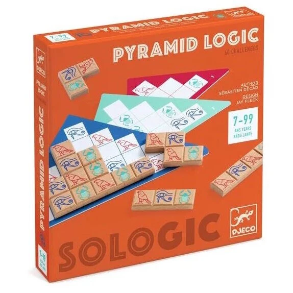 Découvrez Pyramid Logic de la collection Sologic de Djeco, un jeu de logique pour les enfants à partir de 7 ans, dans lequel ils devront compléter les cartes « Pyramide » à l’aide de pièces en bois illustrées de hiéroglyphes.