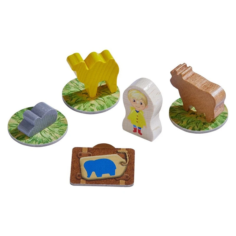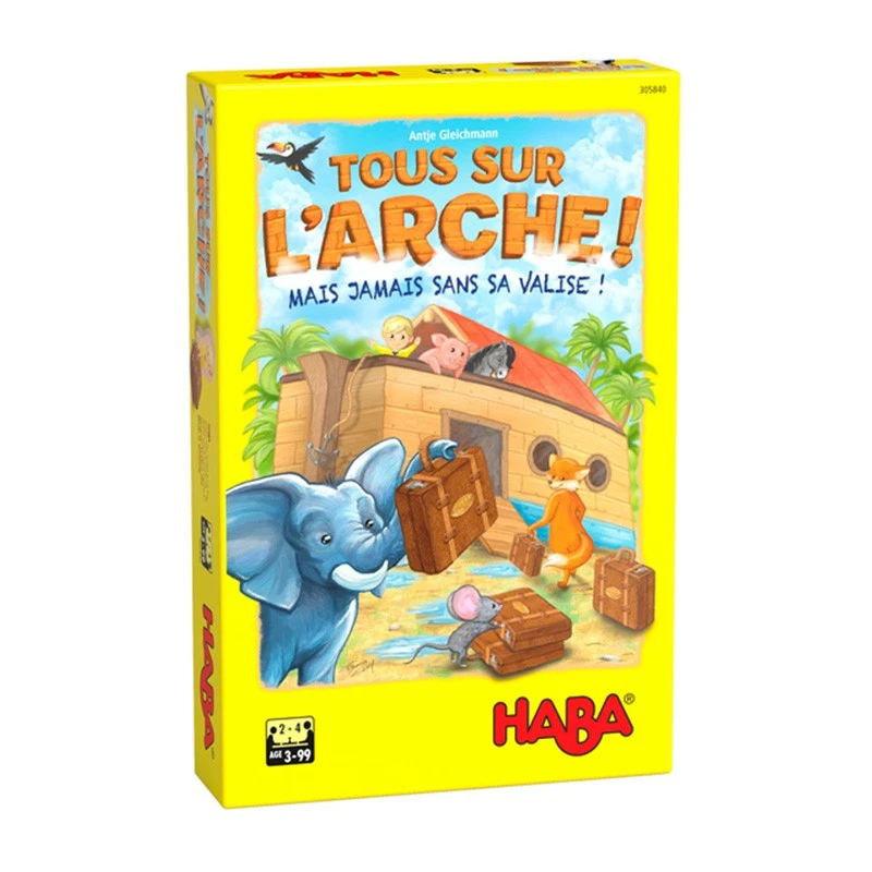 Il pleut depuis des heures ! Les joueurs aident Noé à faire monter les animaux et tous leurs bagages sur l’arche ! Pour ce faire, ils cherchent la tuile « valise » correspondant à chaque animal et mémorisent l’emplacement des valises mouillées. Les joueurs gagnent la partie tous ensemble si tous les animaux sont sur le bateau avant l’inondation.