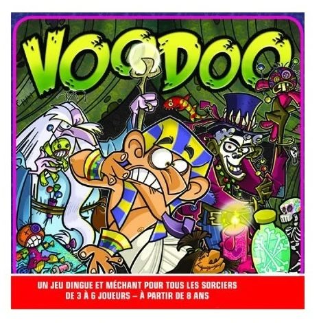 Dans Voodoo, les joueurs vont essayer de devenir les sorciers les plus malveillants de tous les temps. A grand renfort de malédictions et de magie noire, ils vont rendre impossible la vie de leurs adversaires ! Vous allez devoir sauter sur un pied, n’utiliser qu’une seule de vos mains, glousser comme une poule ou finir la partie à genoux. Tout dépendra de la cruauté de vos adversaires !