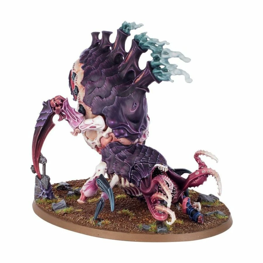 Ce kit plastique permet d’assembler un Psychophage, un monstre tyranide animé par un appétit psychique frénétique. La gueule béante de cette ignoble créature possède trop de mâchoires et est garnie de crocs acérés et de tentacules barbelés, ce qui lui permet d’attraper, de déchiqueter et d’engloutir sa proie. Dressé sur ses six membres terminés par des serres, son corps bulbeux est doté de sacs et d’orifices digestifs, et il est surmonté de cheminées dorsales qui crachent des spores.