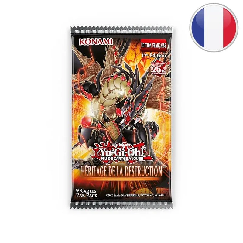 Un booster Héritage de la Destruction contient 9 cartes aléatoires en français du JCC Yu-Gi-Oh.